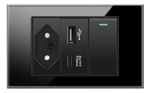 1 Tomada Com Interruptor e Entrada USB e Tipo C Painel Vidro